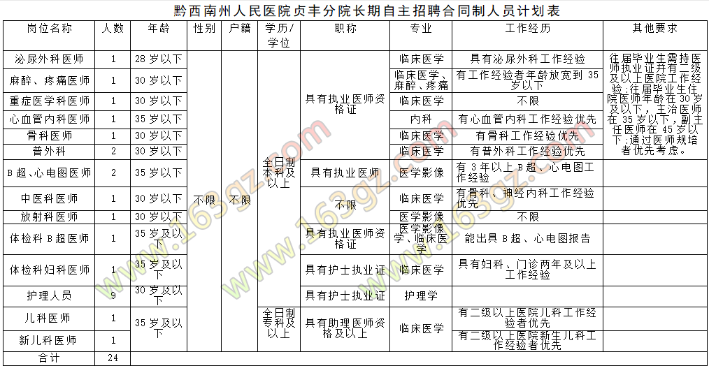 4.招聘崗位詳見(jiàn)附件(黔西南州人民醫(yī)院貞豐分院長(zhǎng)期自主招聘合同制人員計(jì)劃表)。