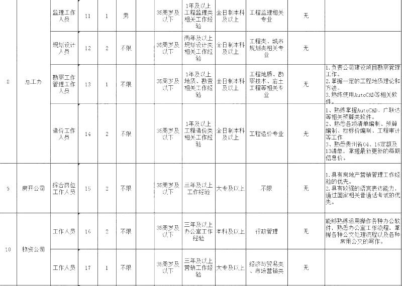 4.除《安順市西秀區(qū)工業(yè)投資(集團(tuán))有限公司2020年面向社會(huì)公開招聘職位及需求一覽表》(附件1)有特殊要求外,報(bào)考者年齡應(yīng)在18周歲及以上,具有完全民事行為能力;具有報(bào)名崗位相應(yīng)職稱或通過國(guó)家相應(yīng)職業(yè)資格考試的人員,學(xué)歷可放寬至大專。